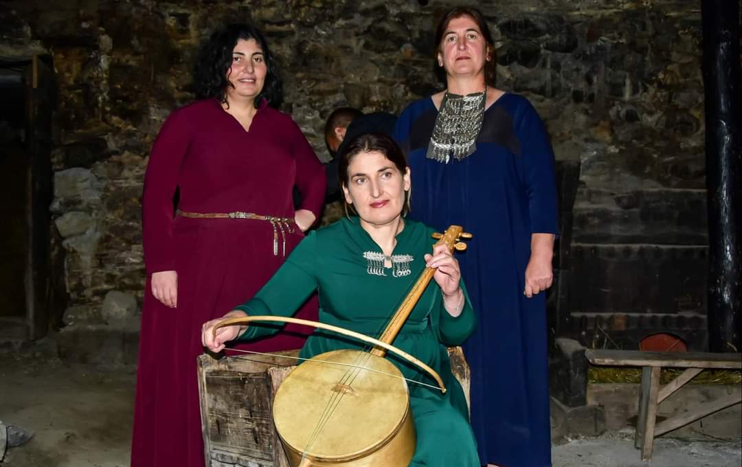 Les sœurs géorgiennes Ana, Eka et Madona Chamgeliani ou Chamgeliani Sisters, viennent d’une longue lignée de chanteurs et chanteuses de la province montagneuse et isolée de la Svanétie, où elles ont grandi. Les sœurs chantent les chansons de leurs ancêtres, dont beaucoup sont censées avoir plus de mille ans et ne peuvent être entendues nulle part ailleurs. Le village d’où elles viennent (Lakhushdi) se fait appeler « Le Village Chantant », et là-bas, les habitants continuent de chanter ces anciennes chansons, riches des récits et légendes locales enracinés dans le saisissant paysage environnant.