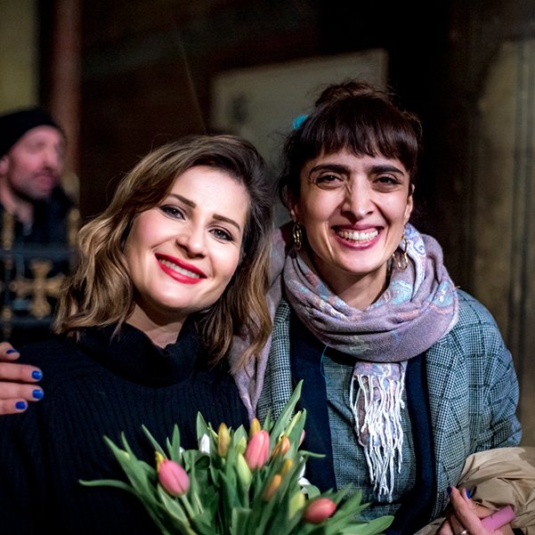 Lisa Batiashvili et Nana Ekvtimishvili, Marraine de cette édition, lors du concert de la violoniste en duo avec la pianiste Giorgi Gigashvili à l’Eglise Saint-Germain-des-Prés.