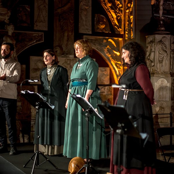 Concert de chants polyphoniques géorgiens du groupe Chamgeliani Sisters & Friends à la chapelle des Beaux-Arts de Paris.