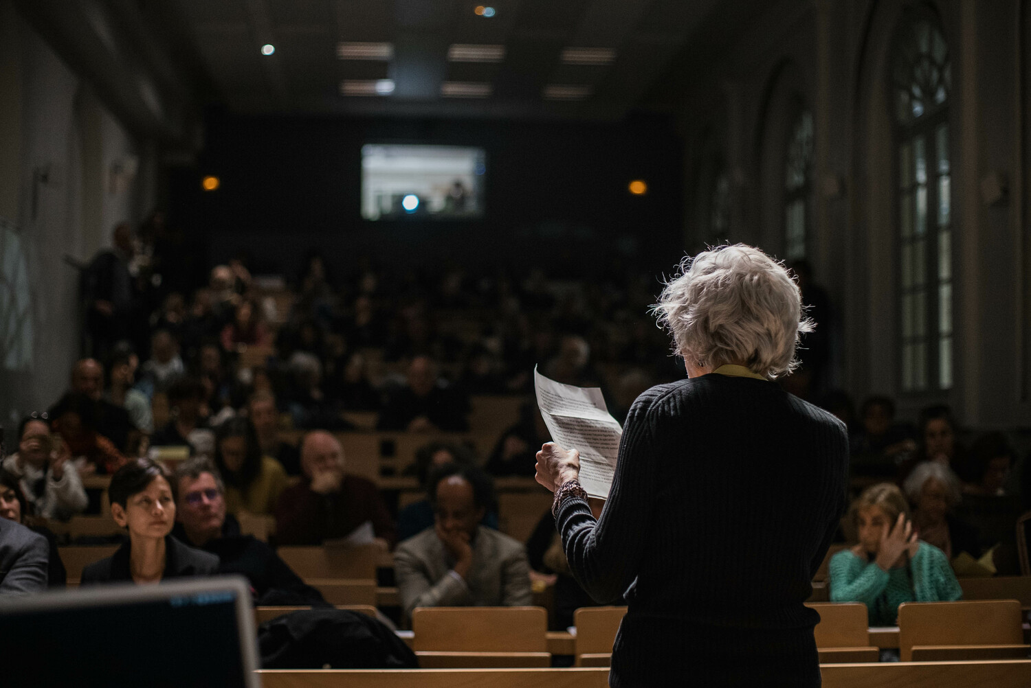 Iryna Dmytrychyn, traductrice, historienne et responsable des études ukrainiennes à l’INaLCO, lors d’une rencontre autour du livre “Hommage à l’Ukraine”, au CNL.