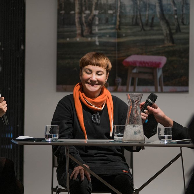 25 / 11 / 21 : Eugenia Maximova lors du vernissage de son exposition de photographies The Places You Called Home, à l’Espace des Femmes - Antoinette Fouque