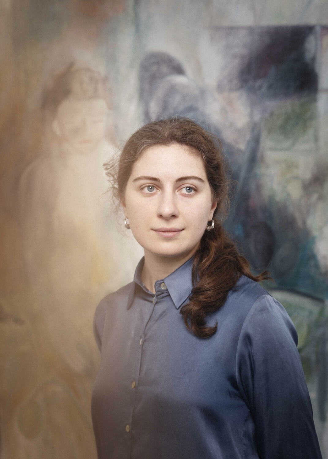 Nino Kapanadze, née à Tbilisi en 1990, pratique la peinture dès son plus jeune âge, elle est actuellement en dernière année aux Beaux-Arts de Paris. Son expérience artistique picturale pluridisciplinaire intègre la technique de la fresque (affresco), la lithographie, la gravure, l’installation et la photographie ; techniques qu’elle emploie au service de la peinture qui est au cœur de son art. En 2007, elle s’inscrit à l’Académie d’État des Arts de Tbilissi, faculté d’architecture, où elle obtient son diplôme en 2015. Durant cette période, elle suit également des cours à l’Université Aalto d’Helsinki et au BAUHAUS à Dessau. En 2018, elle s’installe en France pour poursuivre ses études à l’Institut d’études politiques de Paris (Sciences Po) jusqu’en 2020. C’est à cette époque qu’elle décide de se consacrer entièrement à la peinture à l’huile.