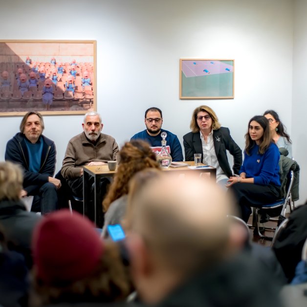 22 / 11 / 24 : Rencontre avec les artistes Nazik Armenakyan, Karén Khachaturov et Khachatur Martirosyan sur la place des arts visuels à Erevan, animée par Alain Berland, commissaire des expositions du festival, à la Librairie-Galerie Métamorphoses.