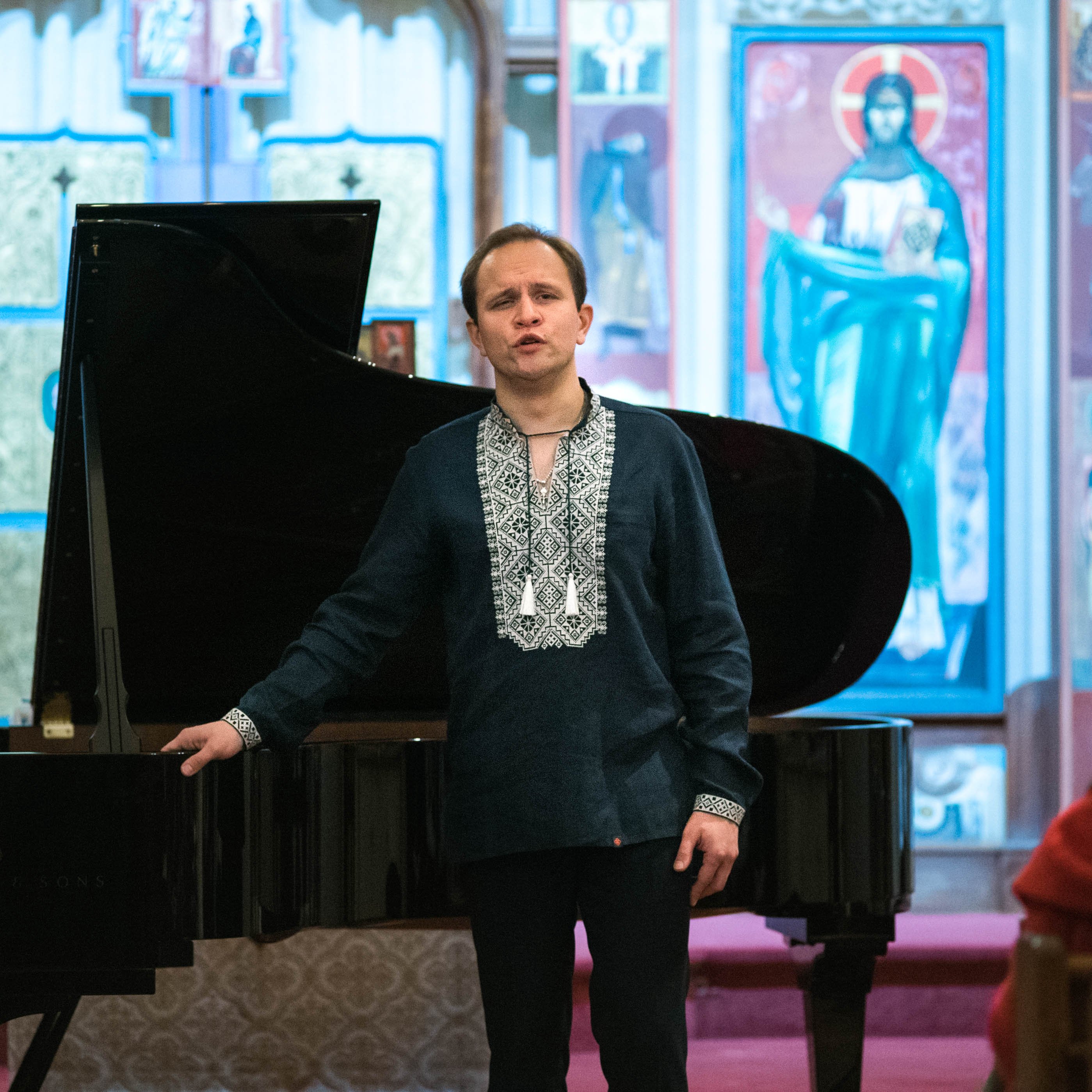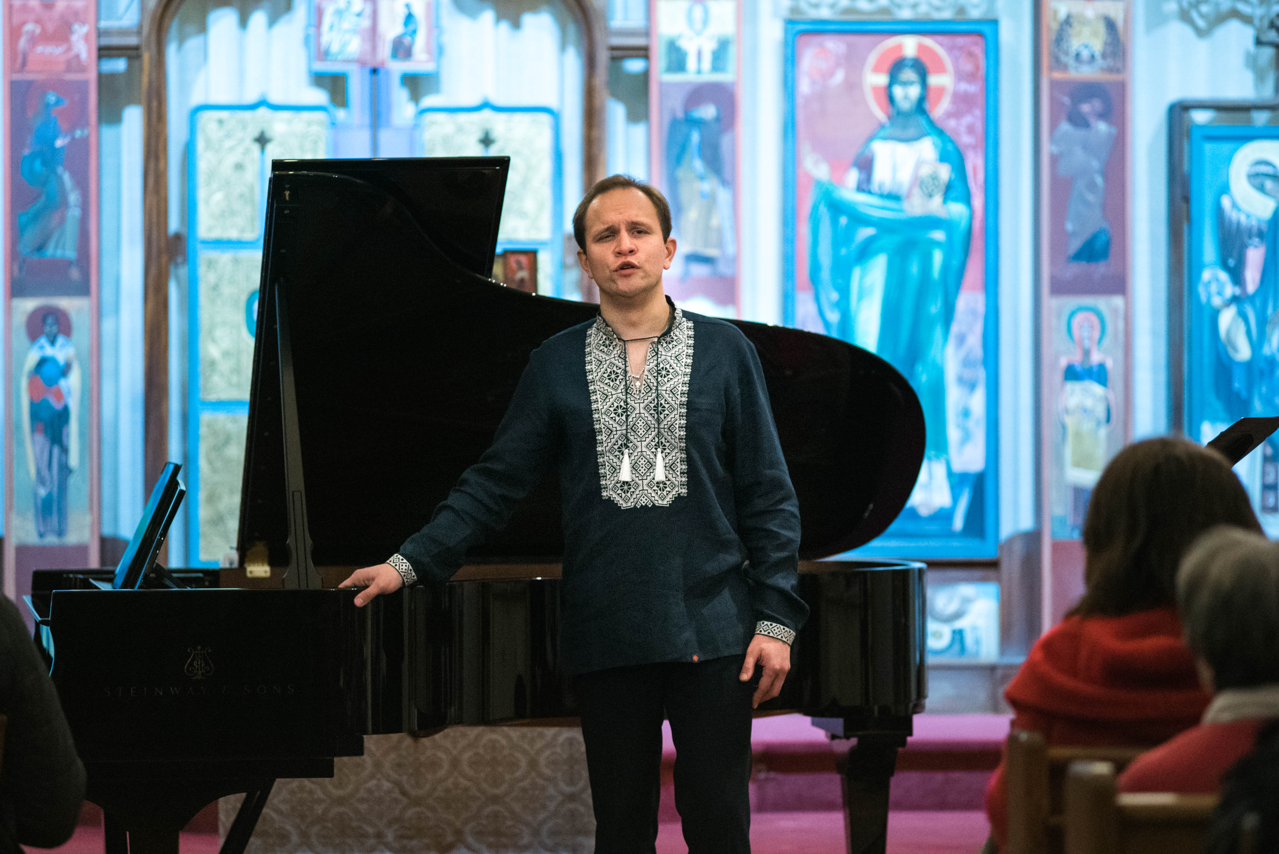 Le baryton Igor Mostovoi lors du concert à l’église Saint-Volodymyr-le-grand, accompagné par la pianiste Anastasia Rizikov.
