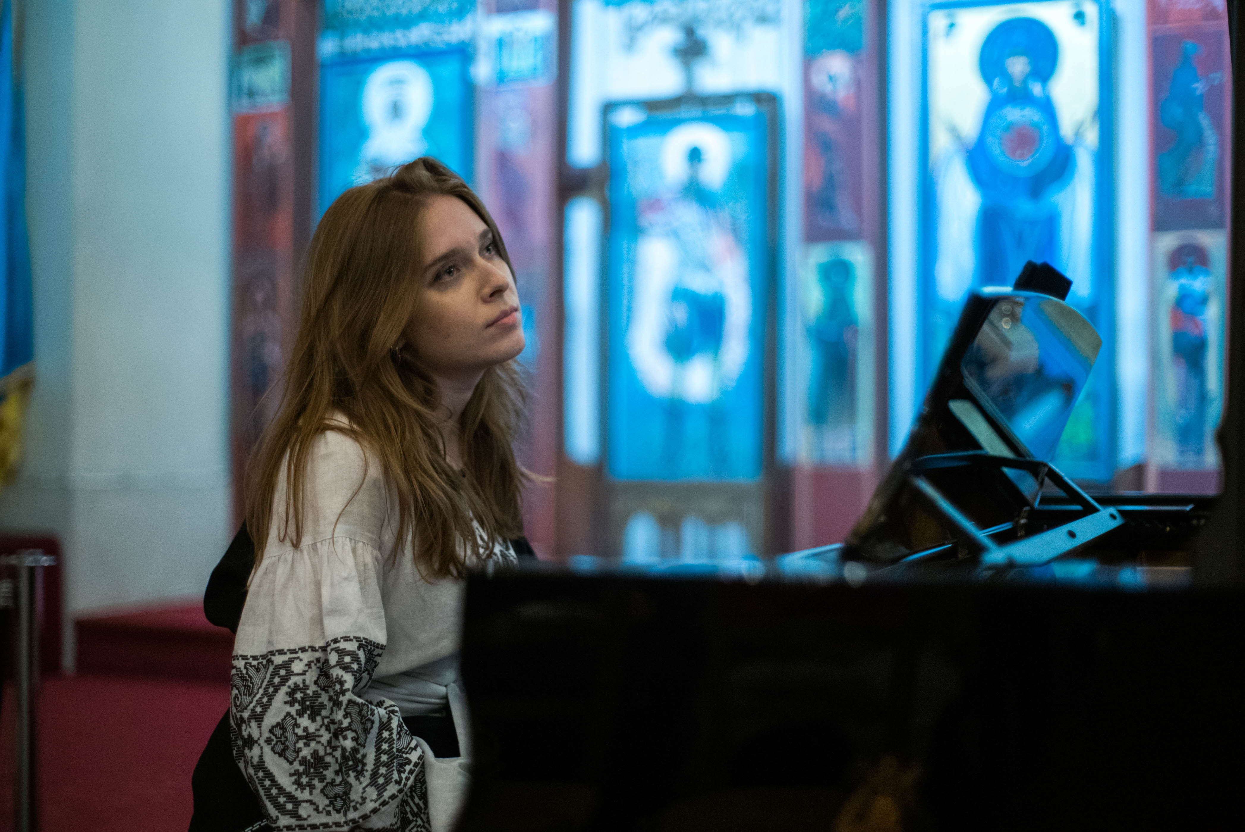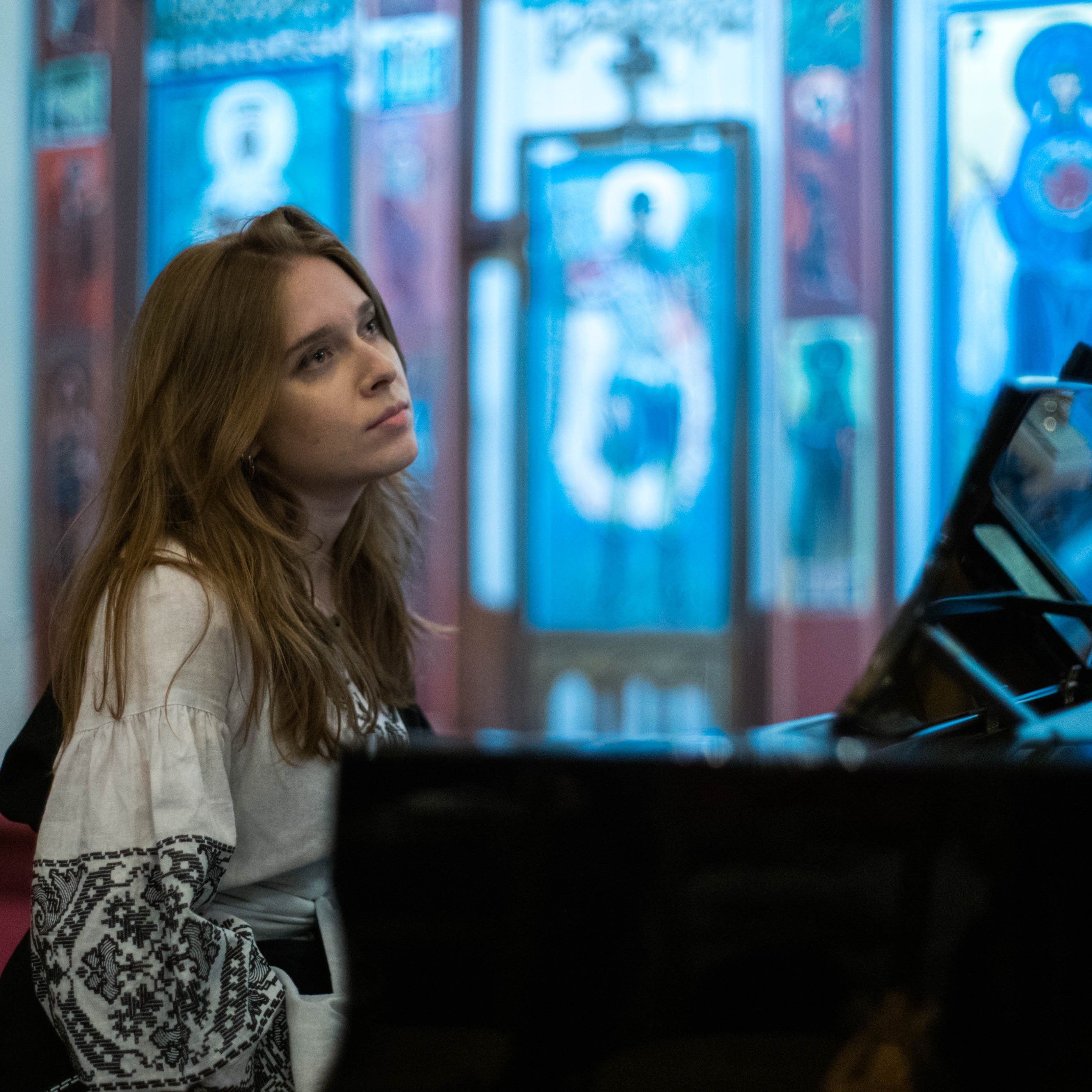 La pianiste Anastasia Rizikov lors du concert à l’église Saint-Volodymyr-le-grand, accompagnant le baryton Igor Mostovoi.