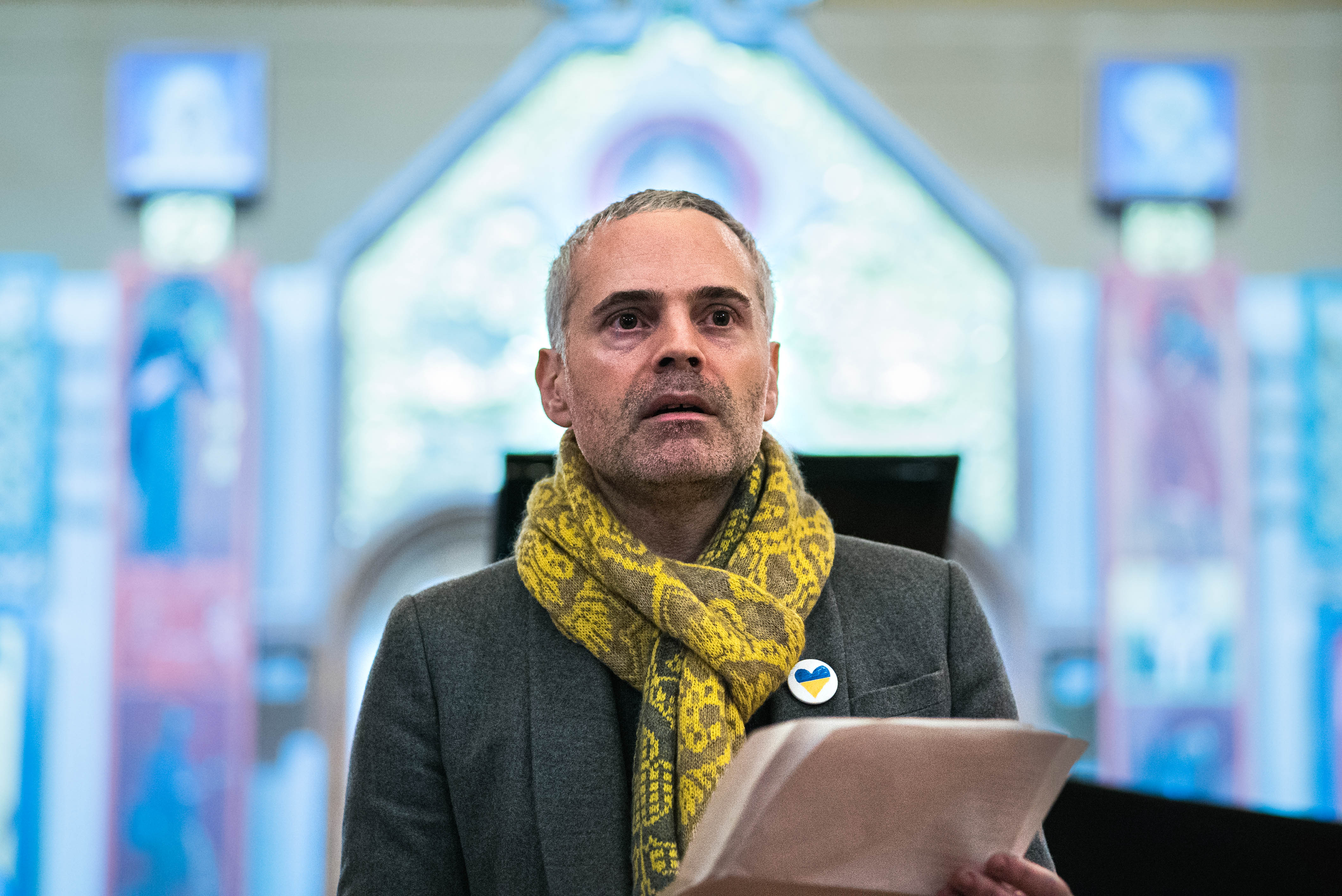 Alina Vorokh, ténor de l’Opéra d’Odessa, en répétition avant le concert tenu à l’église Saint-Germain-des-Prés.