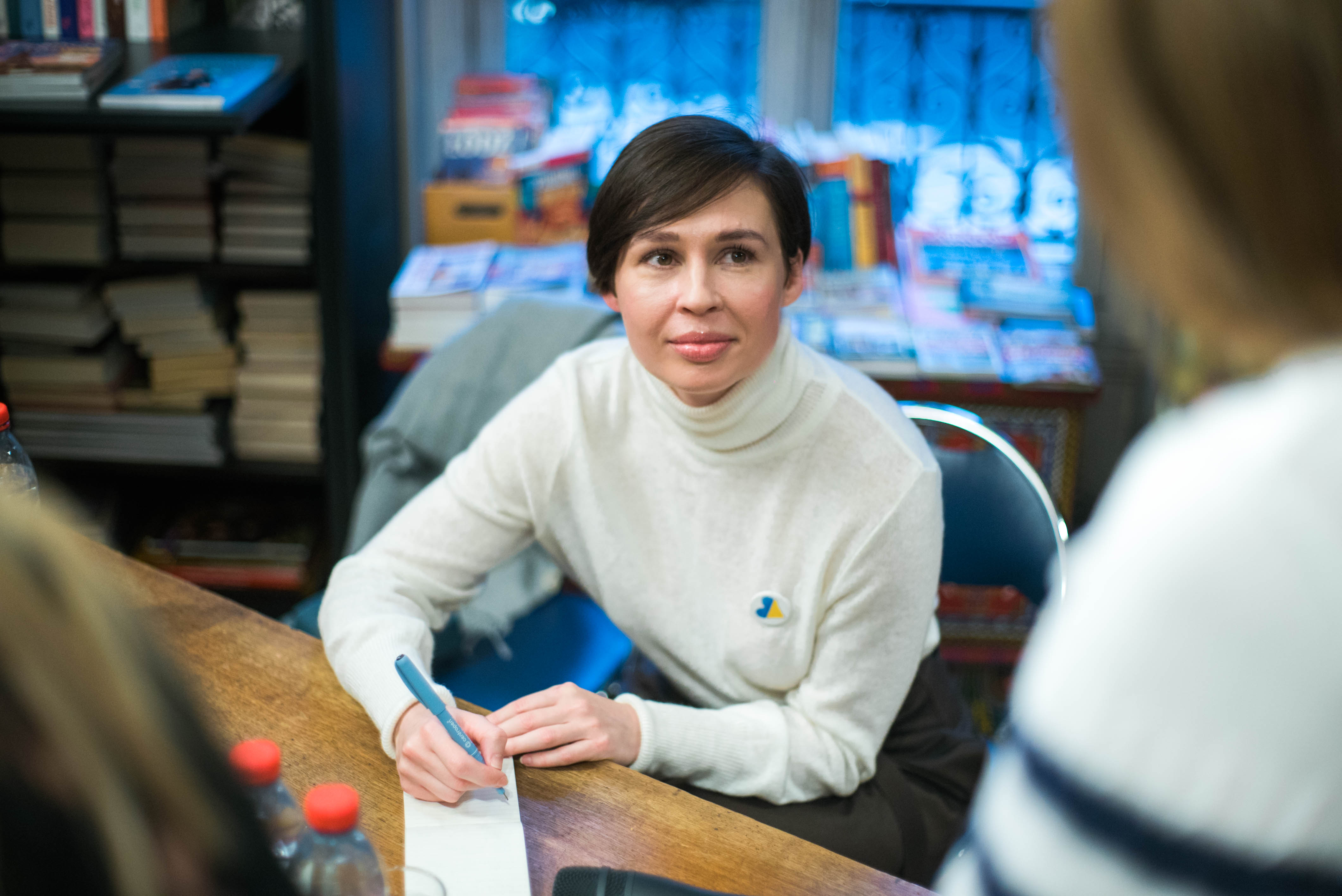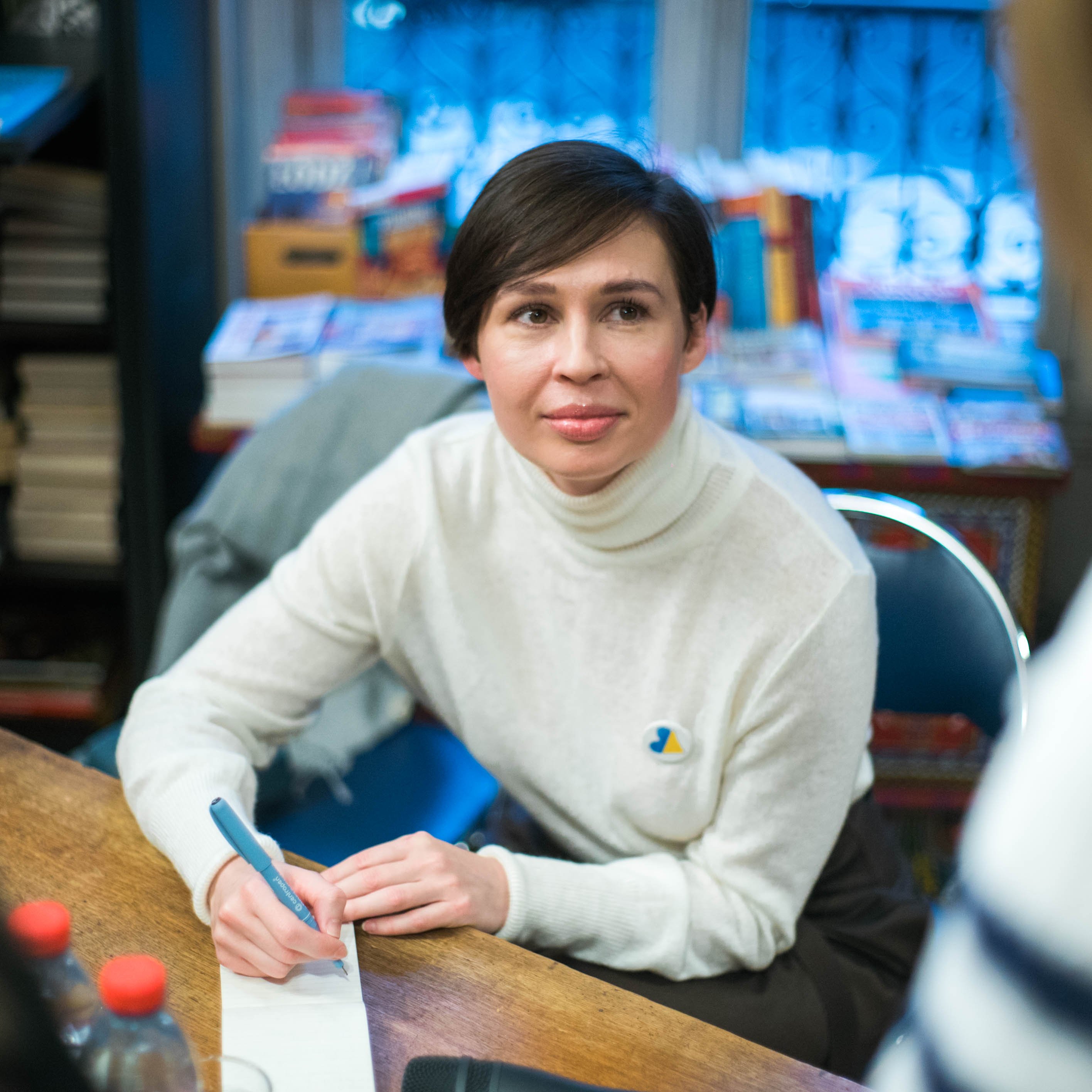 27/11/22 : Sofia Andrukhovych lors d’une séance de dédicace de son ouvrage Felix Austria (Editions Noir sur Blanc, 2018), à la suite d’une rencontre à la librairie polonaise autour de ce même livre. En présence de sa traductrice, Iryna Dmytrychyn, et animée par Oriane Jeancourt, rédactrice en chef à Transfuge.