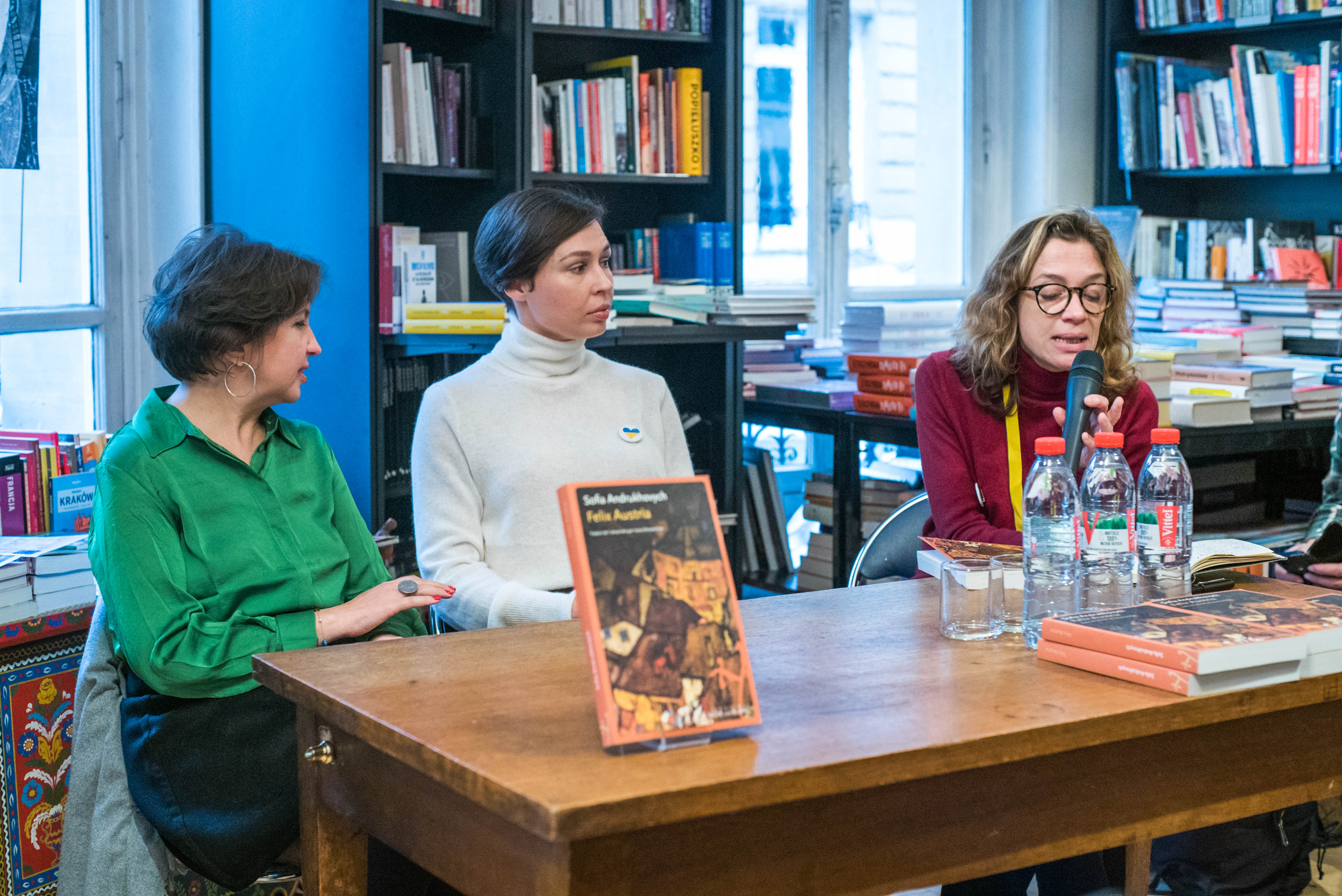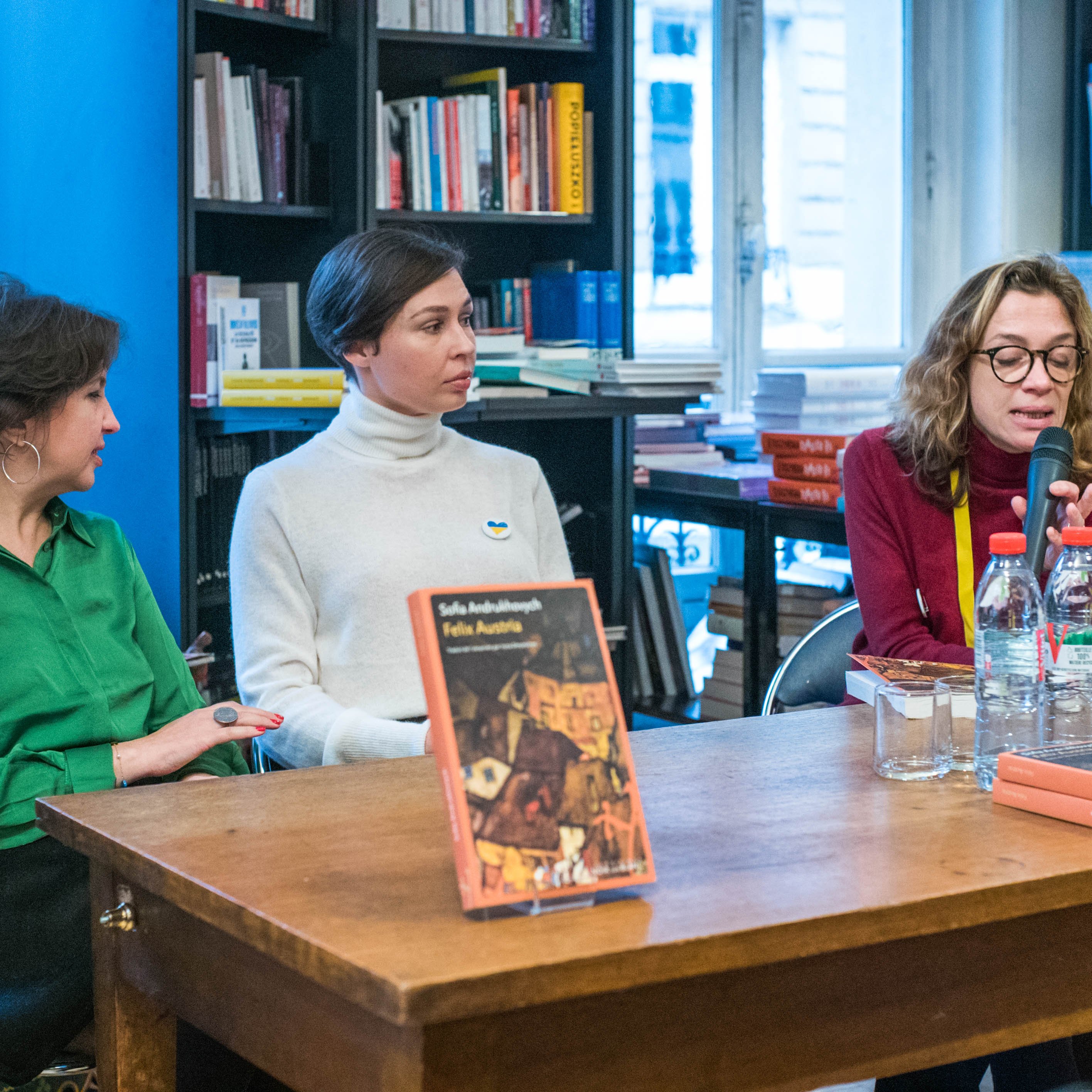Sofia Andrukhovych présentant son livre Felix Austria (Editions Noir sur Blanc, traduit de l’ukrainien par Iryna Dmytrchyn, 2018), en présence de sa traductrice. Rencontre animée par Oriane Jeancourt, rédactrice en chef à Transfuge, à la librairie polonaise.