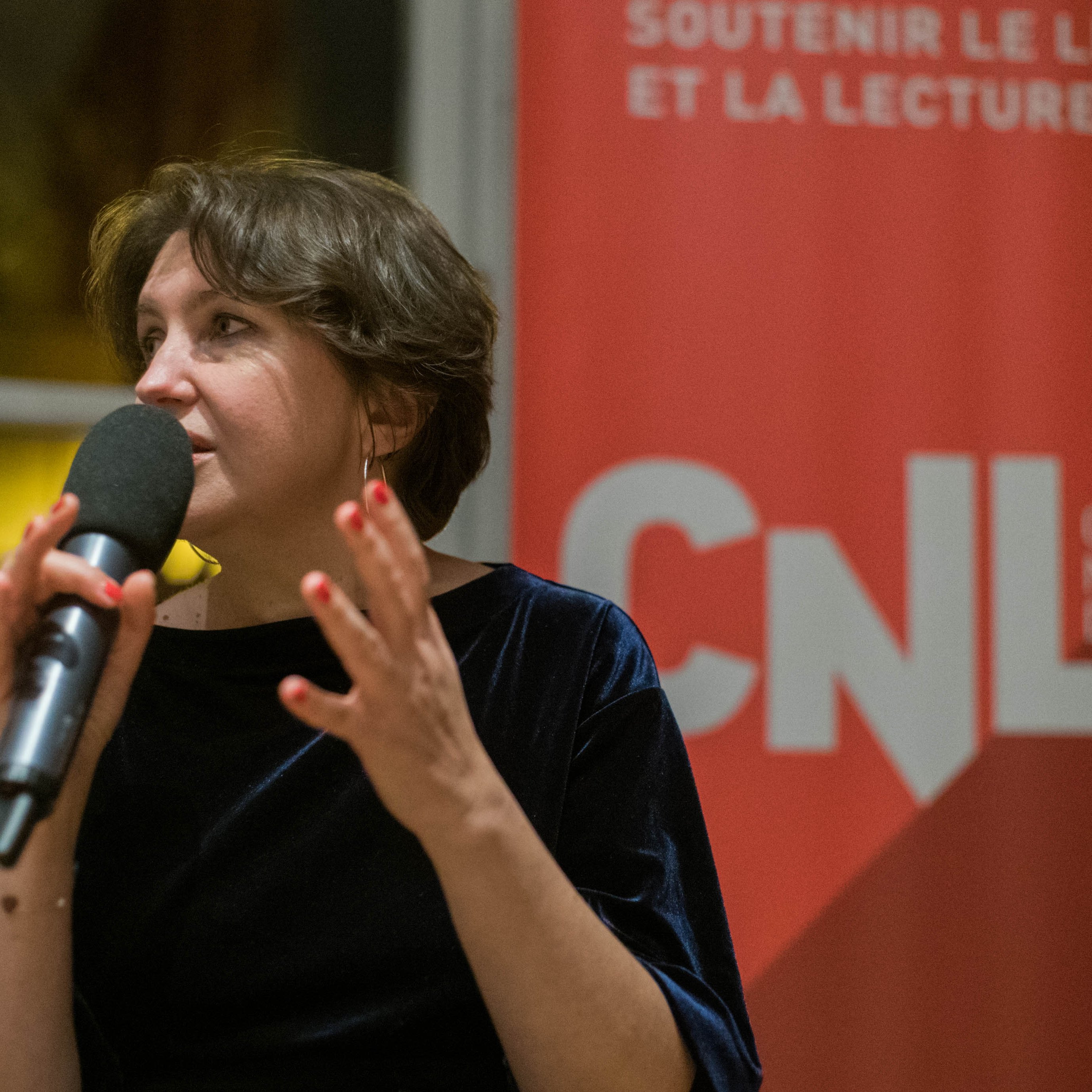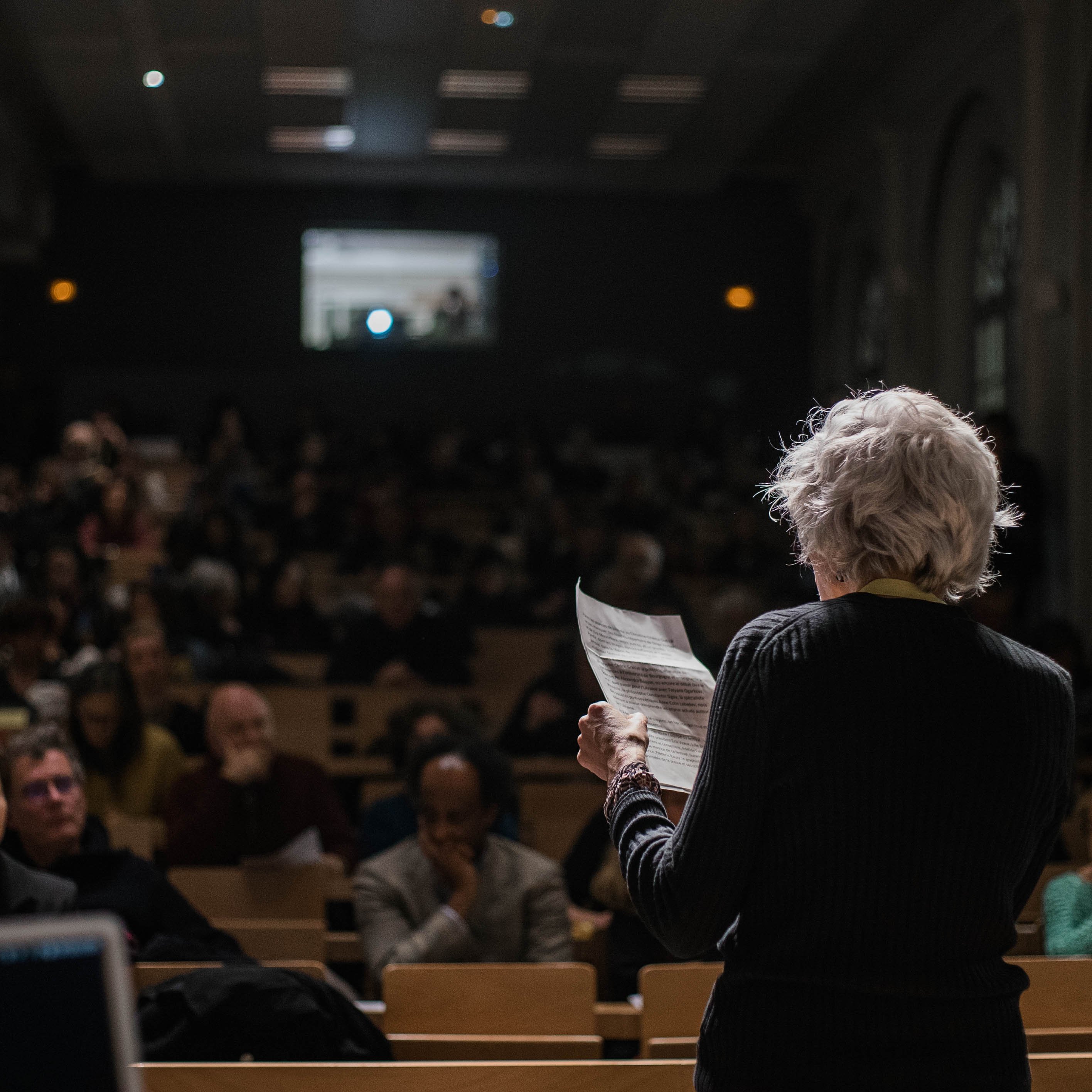 Iryna Dmytrychyn, traductrice, historienne et responsable des études ukrainiennes à l’INaLCO, lors d’une rencontre autour du livre “Hommage à l’Ukraine”, au CNL.