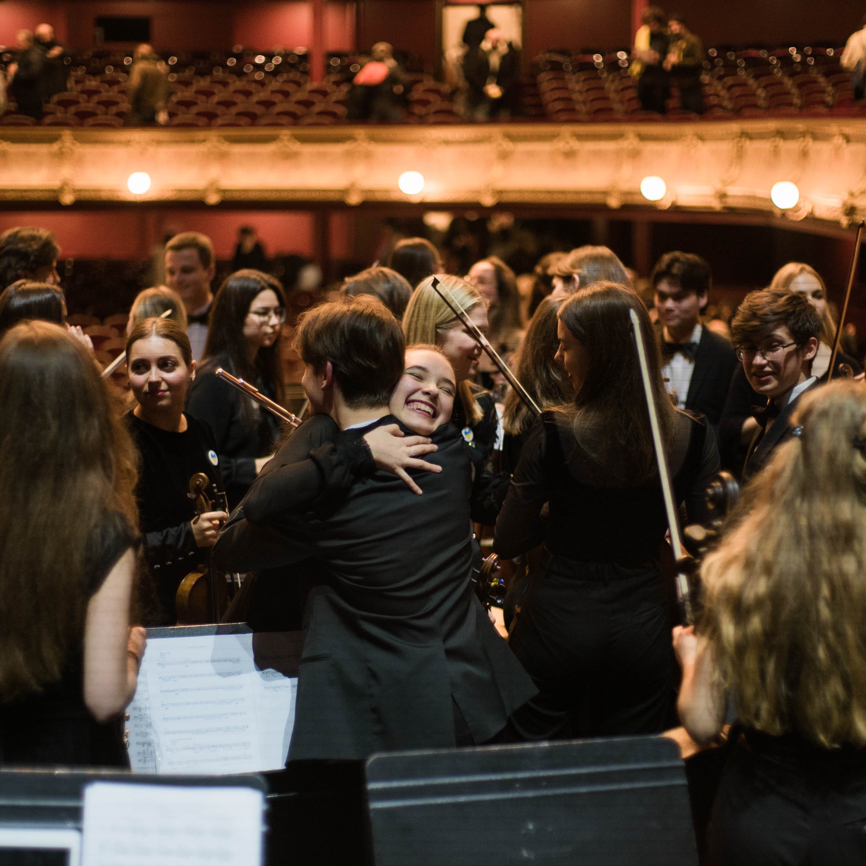 Orchestre Symphonique des Jeunes d’Ukraine, soixante musiciens dirigés par la cheffe d’orchestre Oksana Lyniv, pour la soirée de clôture du Festival au Théâtre du Châtelet.