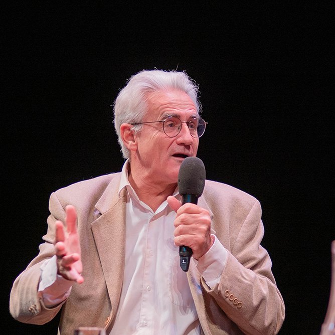 27 / 11 / 21 : André Comte-Sponville, lors de l’hommage au théoricien Tzvetan Todorov, en compagnie de Stoyan Atanassov et animée par Catherine Portevin, à la Maison de la Poésie