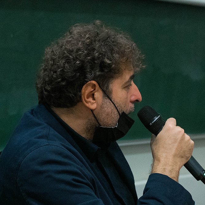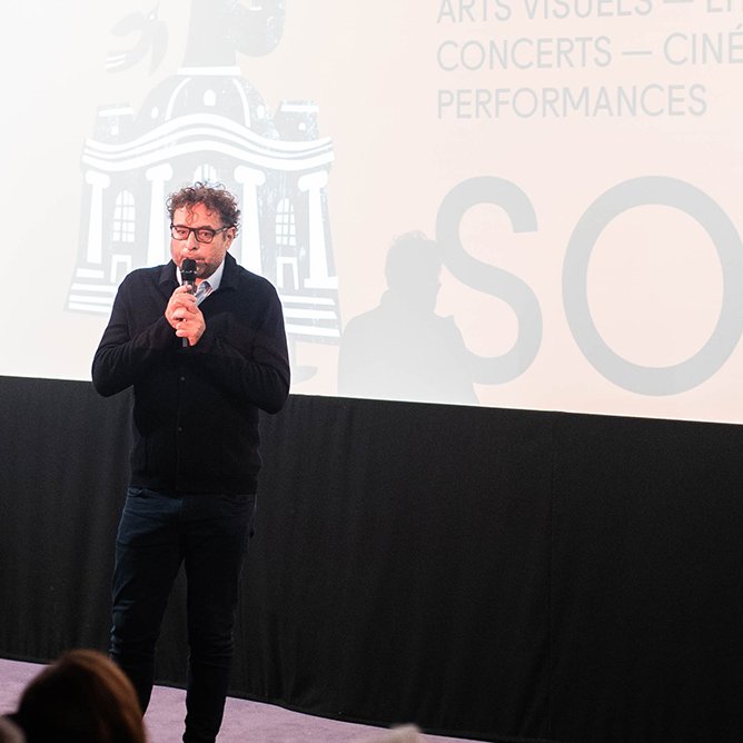 29 / 11 / 21 : Erik Veaux, président de l’association Un Week-End à l’Est, présentant le débat de clôture de la 5ème édition du festival, aux Beaux-Arts de Paris
