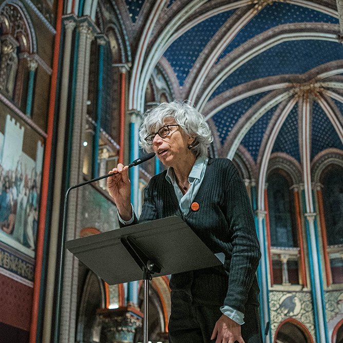 27 / 11 / 21 : Brigitte Bouchard, directrice artistique du festival, présentant le concert du violoniste Svetlin Roussev, à l’Église Saint-Germain-des-Prés