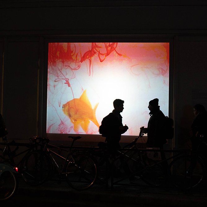 25 / 11 / 21 : Installation vidéo Minouk, le Poisson Peintre 1994 / 2003 de Stefan Nikolaev, à la Galerie Guislain