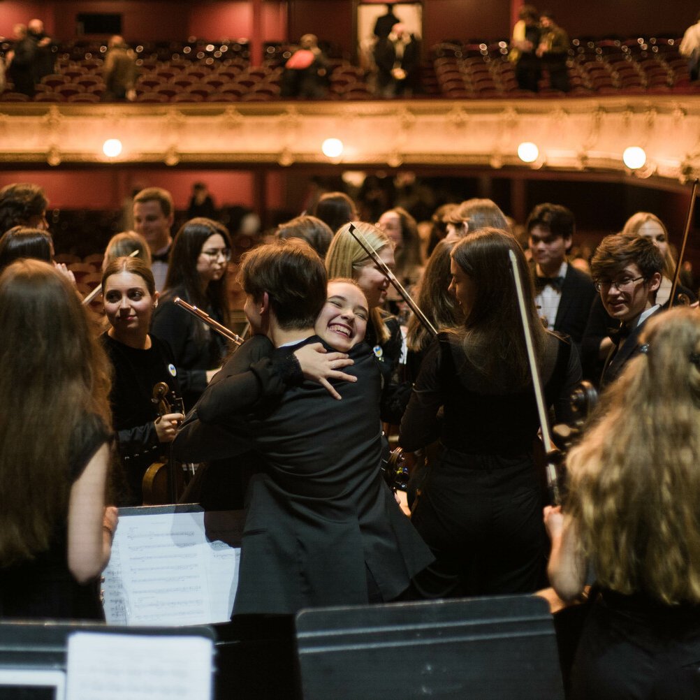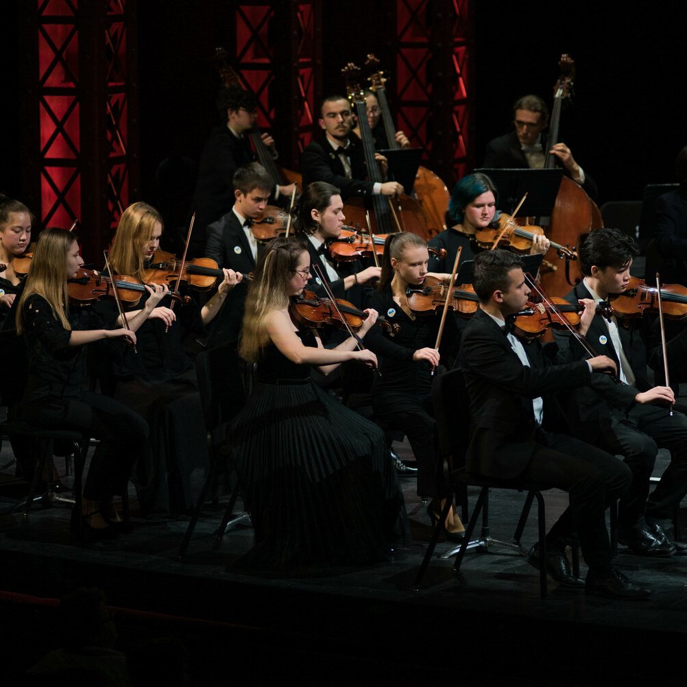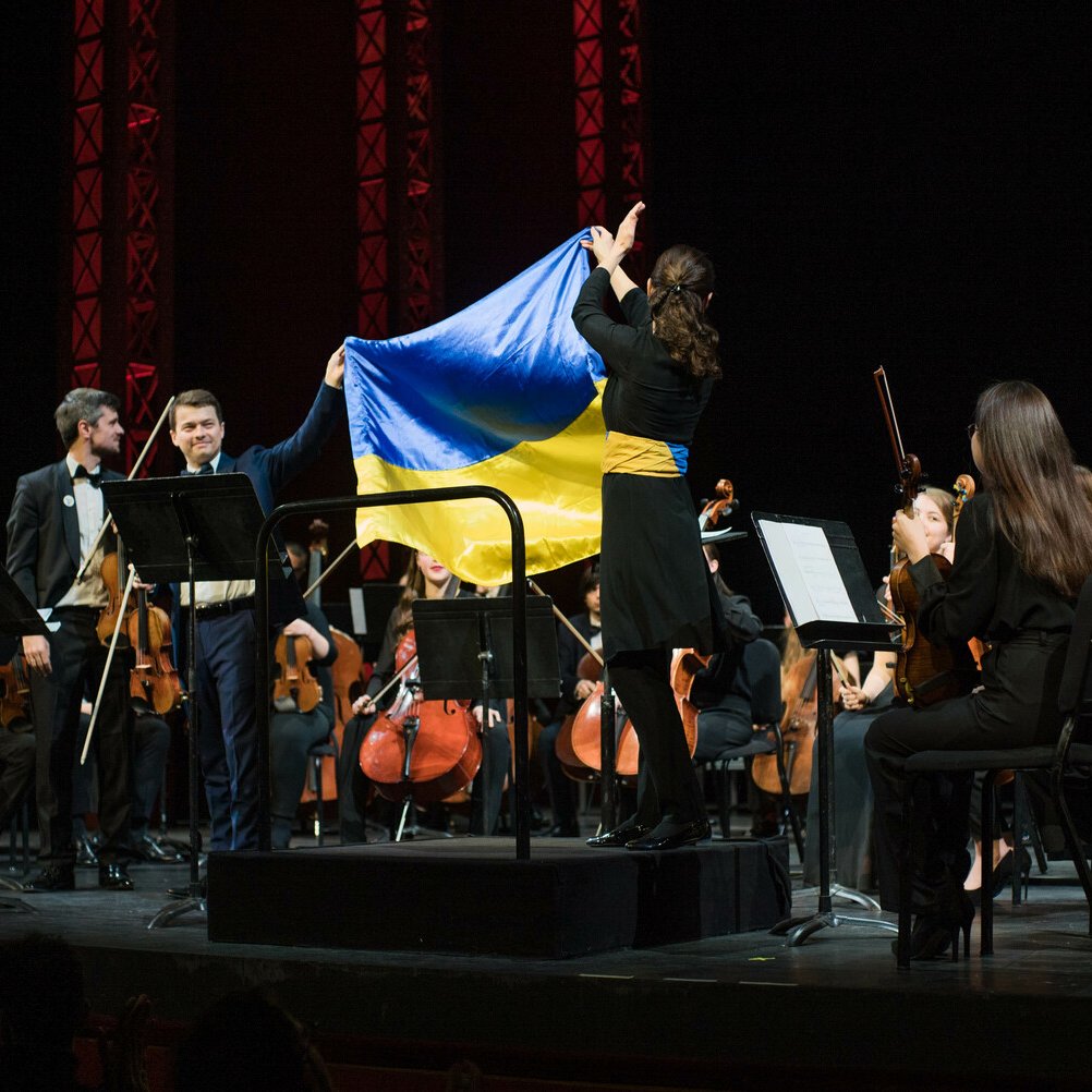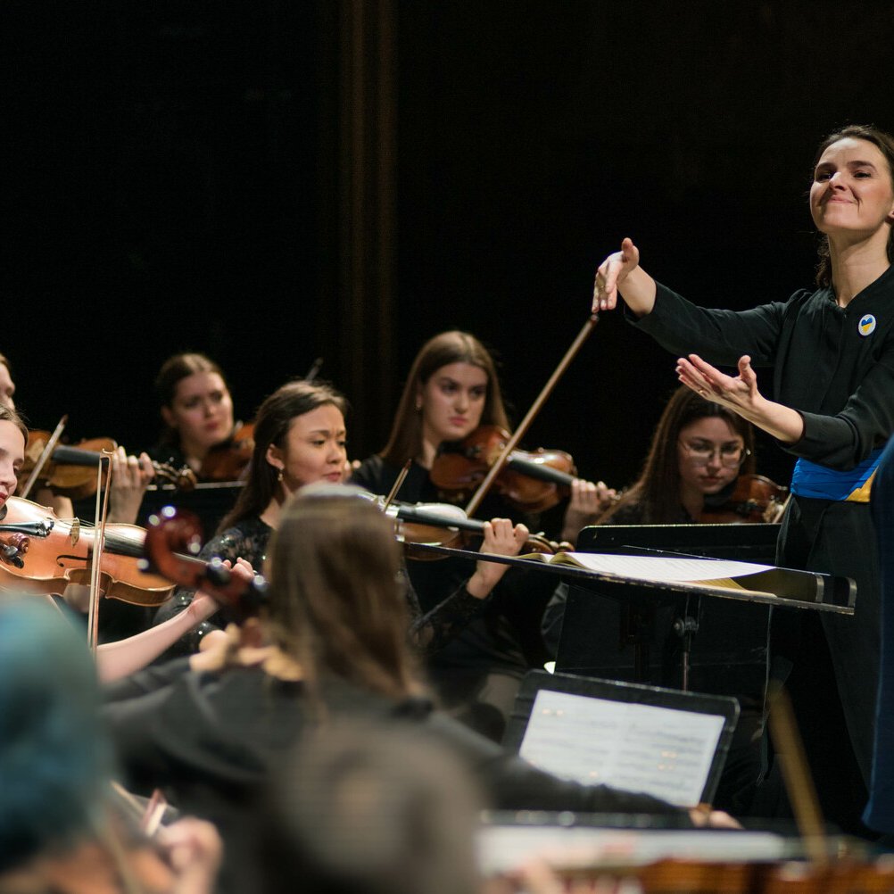 Orchestre Symphonique des Jeunes d’Ukraine, soixante musiciens dirigés par la cheffe d’orchestre Oksana Lyniv, pour la soirée de clôture du Festival au Théâtre du Châtelet.