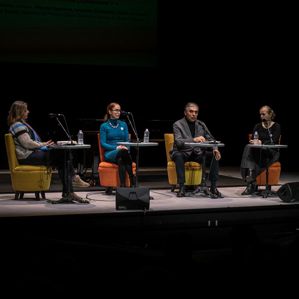 De nombreux débats d’idées et rencontres ont eu lieu : “D’hier à aujourd’hui : comprendre l’Ukraine” avec Alexandra Goujon et Cédric Gras, “L’expérience Odessa Review”, “Les femmes face à la guerre” avec Kateryna Babkina et Tetyana Ogarkova, et “Dire le vrai : quel avenir pour l’Ukraine ?” avec Anna Colin Lebedev, Tetyana Ogarkova et Constantin Sigov.