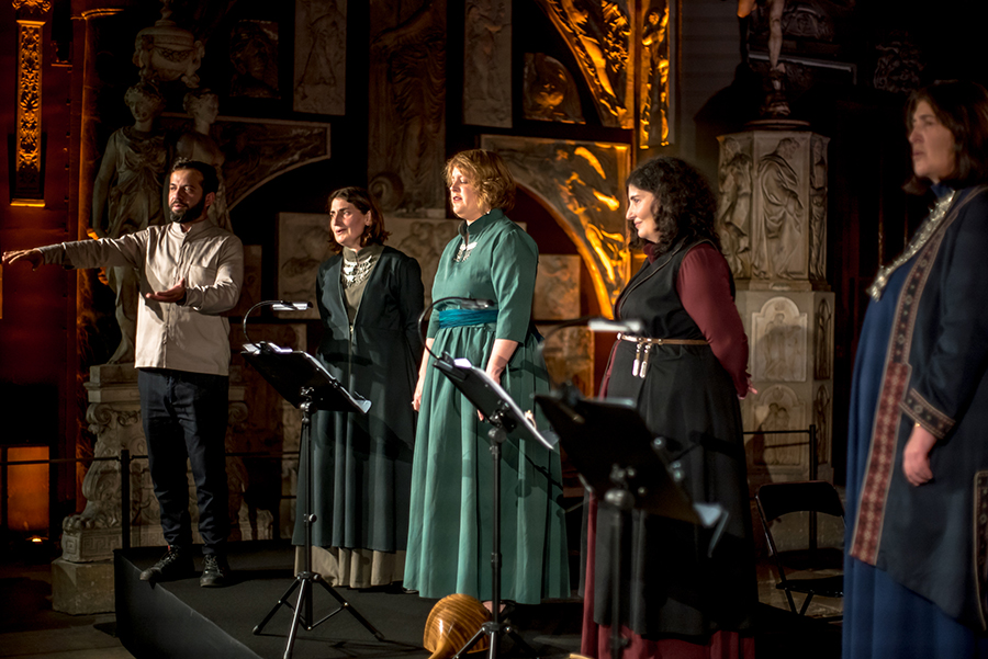Concert de chants polyphoniques géorgiens du groupe Chamgeliani Sisters & Friends à la chapelle des Beaux-Arts de Paris.
