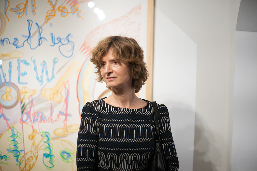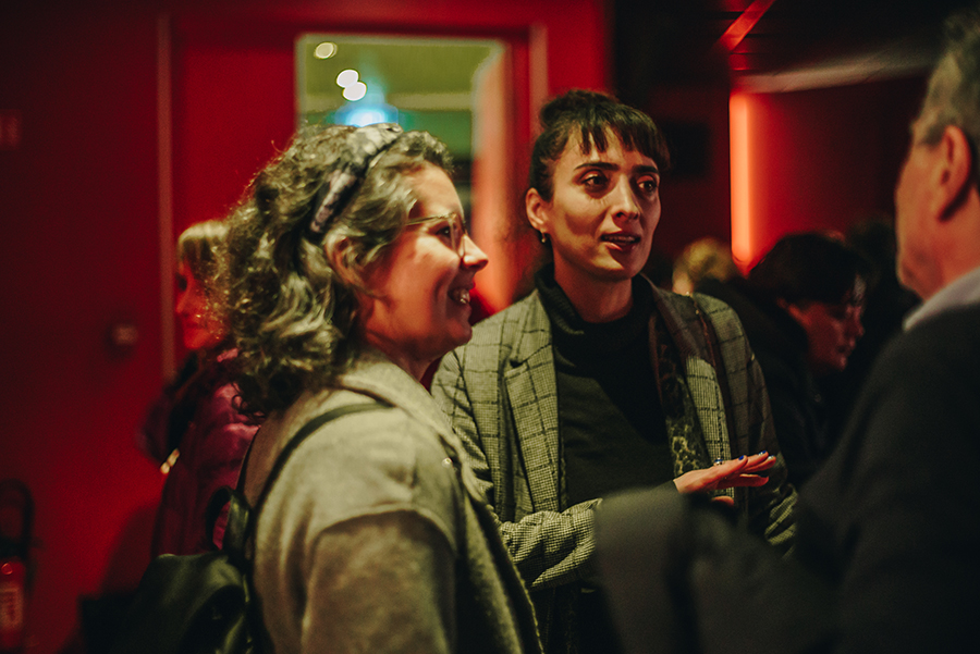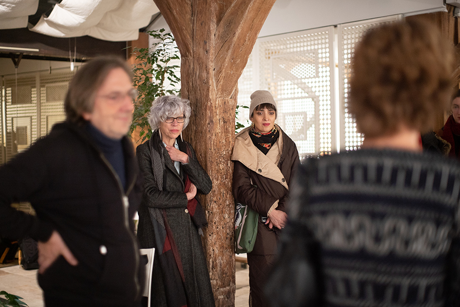 La Marraine Nana Ekvtimishvili et la directrice artistique du festival Brigitte Bouchard, lors du vernissage de l’exposition “Authentic Behaviour”, de l’artiste Maia Naveriani à l’Espace des Femmes.