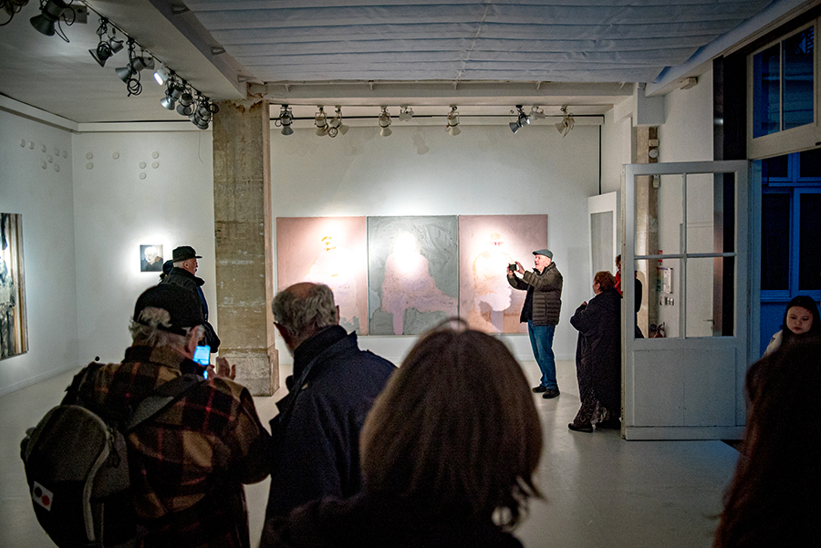 Vernissage, Galerie Visconti 22 accueillant les peintures de Vakho Bugadze.