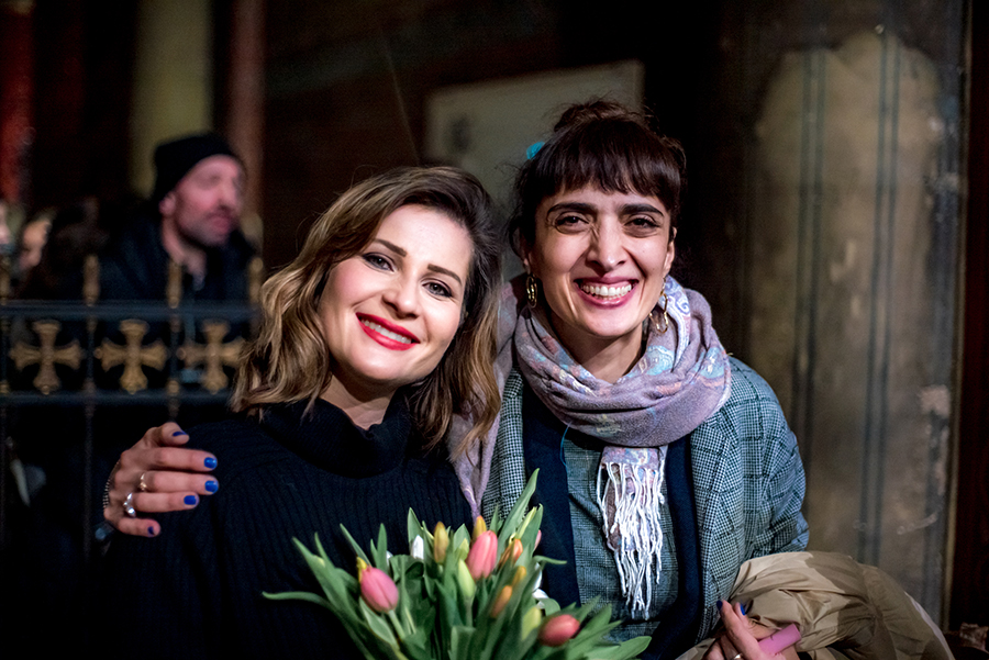 Lisa Batiashvili et Nana Ekvtimishvili, Marraine de cette édition, lors du concert de la violoniste en duo avec la pianiste Giorgi Gigashvili à l’Eglise Saint-Germain-des-Prés.