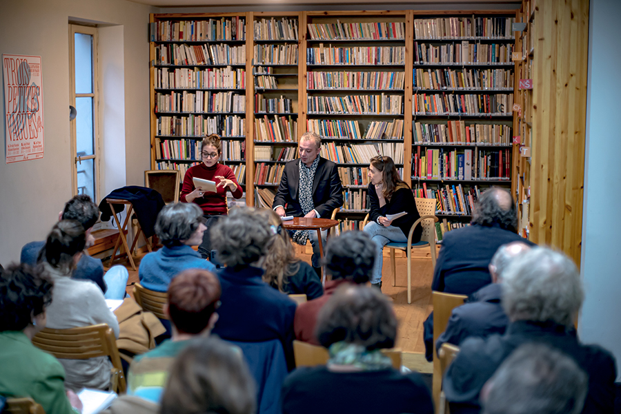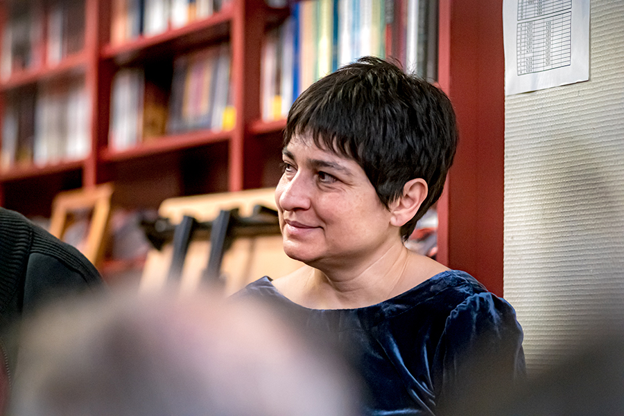 Maïa Varsimashvili-Raphaël, traductrice et docteure en littérature comparée, lors d’une rencontre à la Librairie l’Ecume des Jours avec Temur Babluani, écrivain et réalisateur.